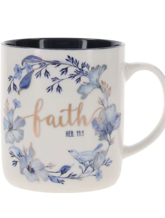 Faith Floral Ceramic Mug with Navy Blue Interior