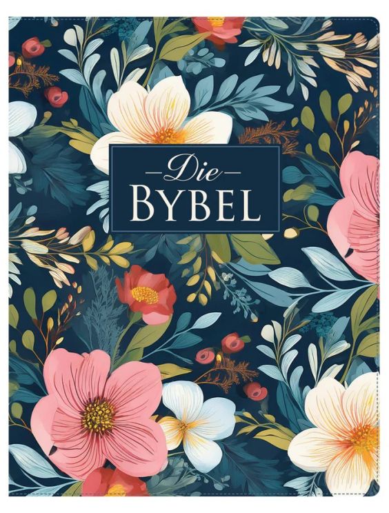 NLV Donkerblou Blomme Kunsleer Joernaal-Bybel