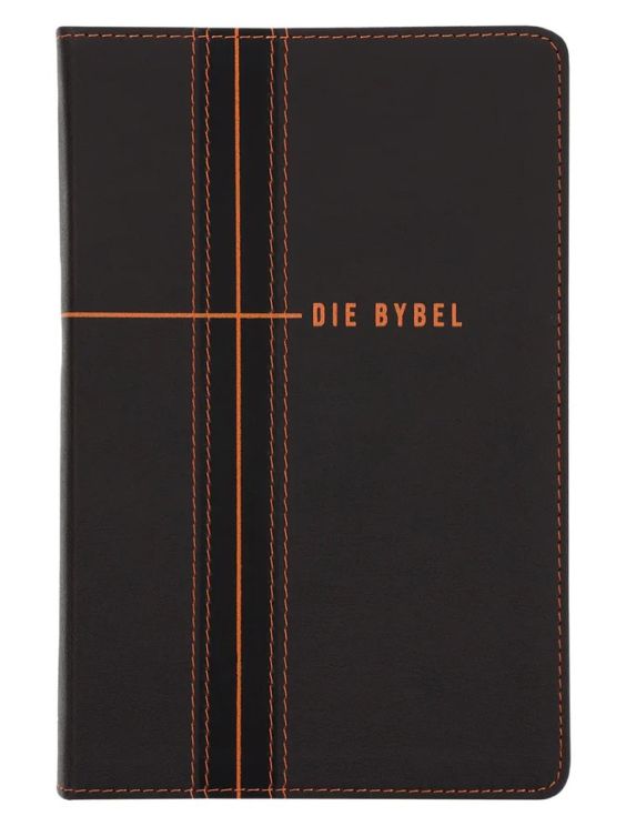NLV Donkerbruin en Oranje Kunsleer Standaard Bybel Met Duimgrepe